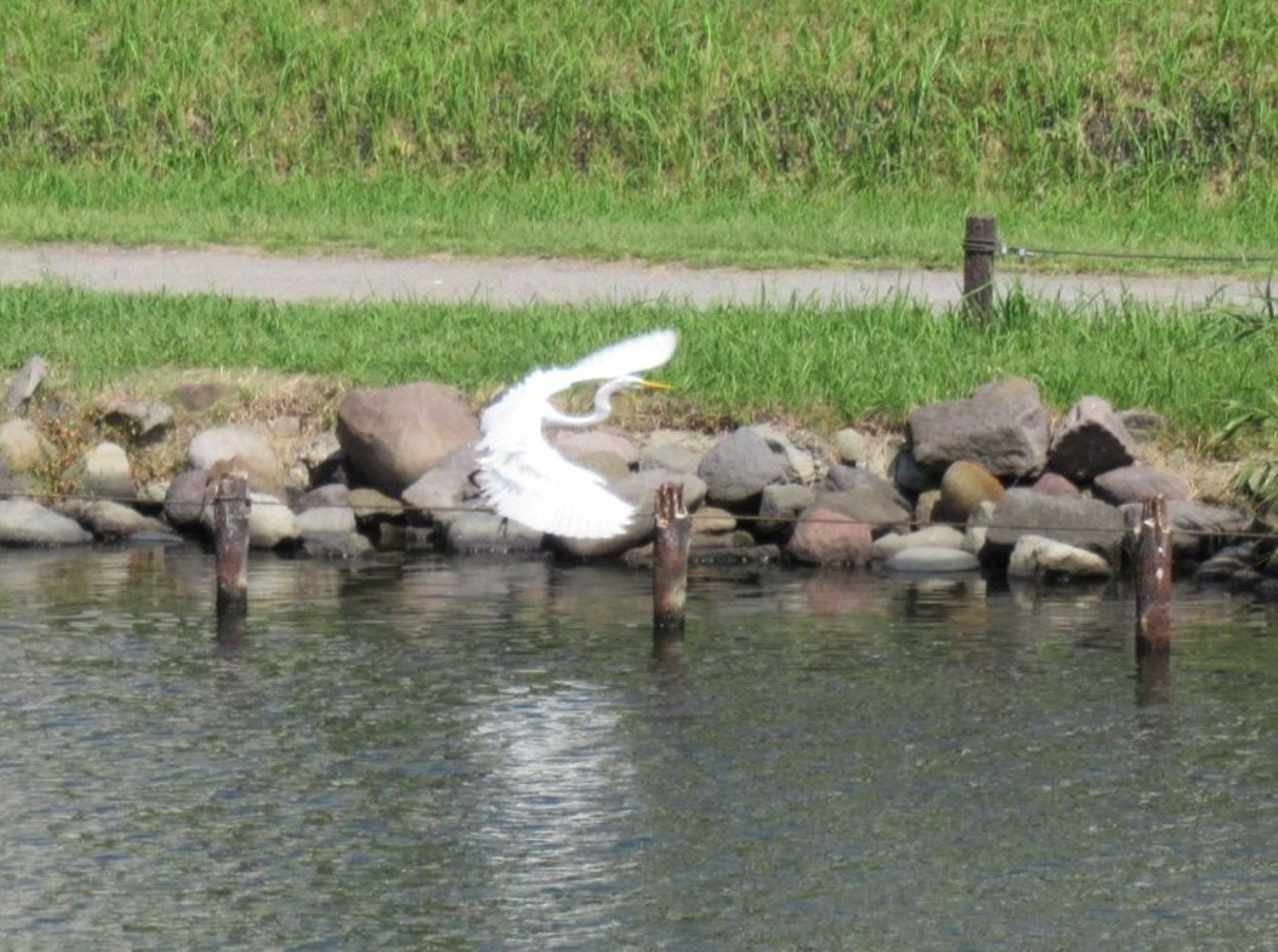 先週快晴だった日の正午に川沿いの道にお散歩に出掛けた時、向こうとこちらの川岸を何回もジグザグと飛び回る活発なシラサギさんに会いました~☆彡
