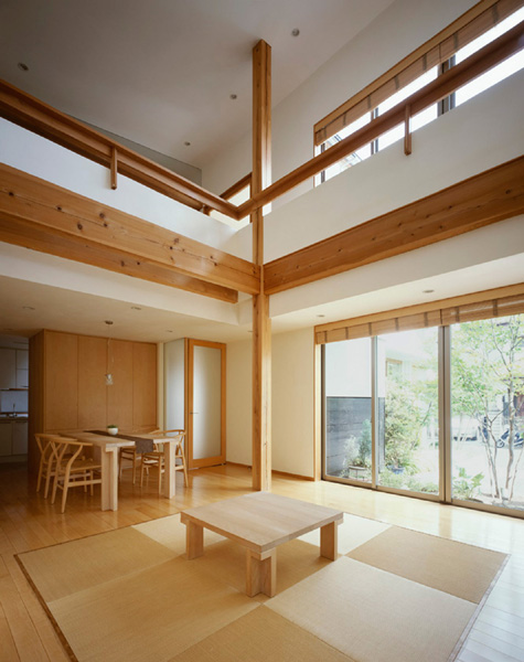 それを象徴するように大黒柱が吹抜を貫いて、柱と梁の架構を見せています。