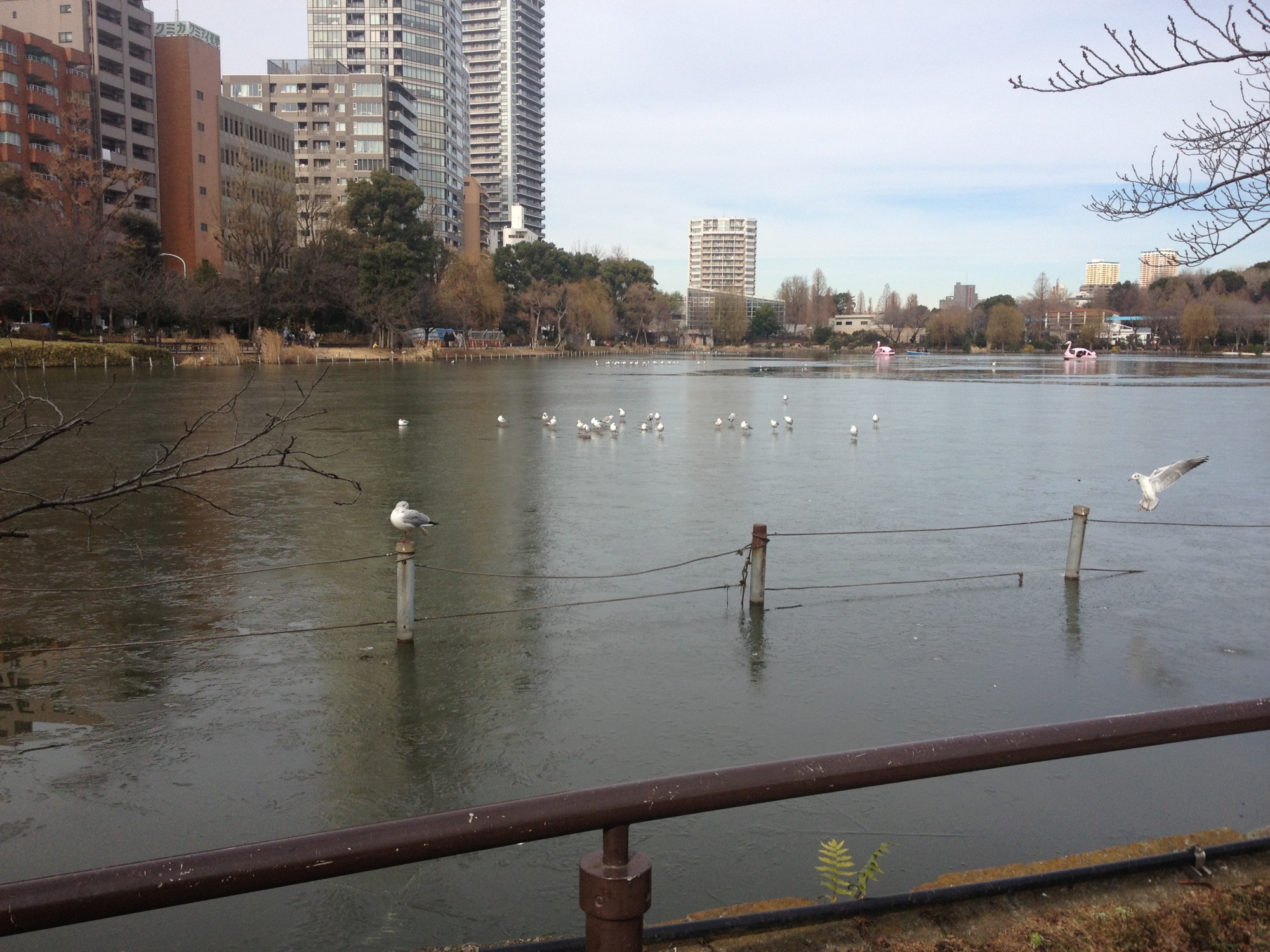 今週の様子です。不忍池も凍っています。